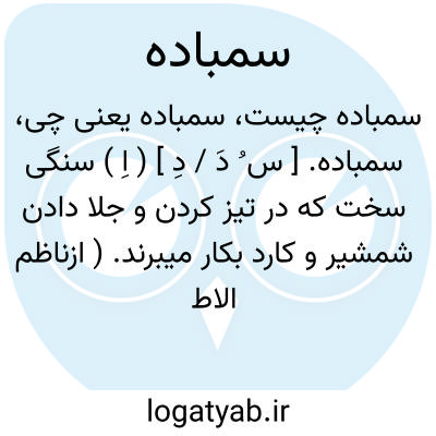 سمباده. [ س ُ دَ / دِ ] ( اِ ) سنگی سخت که در تیز کردن و جلا دادن شمشیر و کارد بکار میبرند. ( ازناظم الاطباء ). سنگی است که صیقل را شاید. ( لغت نامه اسدی ). سنگ سمباده. ( فرهنگ فارسی معین ):