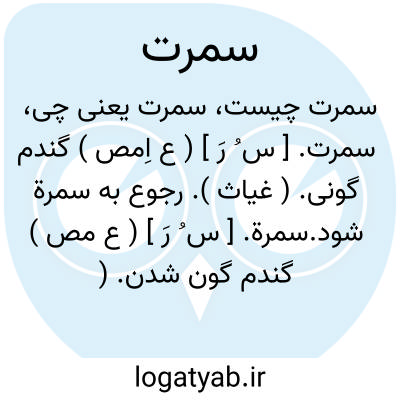 سمرة. [ س ُ رَ ] ( ع مص ) گندم گون شدن. ( دهار ) ( تاج المصادر بیهقی ) ( آنندراج ) ( منتهی الارب ). گندم گون گردیدن. ( ناظم الاطباء ). || ( اِمص ) گندم گونی. ( مهذب الاسماء ). گندم گونی و آن رنگی است میان سفیدی و سیاهی. ( از آنندراج ) ( از منتهی الارب ). گندمگونی و رنگی میان سپیدی و سیاهی و زردفامی و رنگ قهوه ای و خاکستری. ( ناظم الاطباء ).