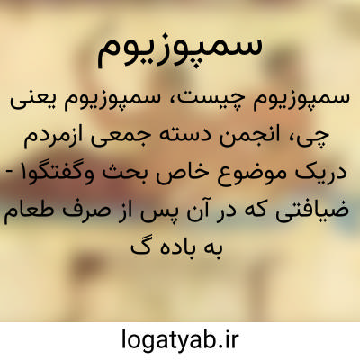 ۱ - ضیافتی که در آن پس از صرف طعام به باده گساری می پرداختند و مهمانان به تماشای رقص زیبا رویان و شنیدن موسیقی مشغول میشدند. ۲ - ضیافت مهمانی. ۳ - جمعیتی که هدفش مباحثات دوستانه فلسفی و علمی است. ۴ - مجمعی که در آن اشخاص مختلف راجع به موضوعی واحد مقالاتی تهیه کنند یا سخنرانیهایی ایراد نمایند سمپوزیوم نفت.