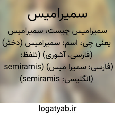 معنی: ملکه آشور و بابل که گویند، ملکه افسانه ای آشور که به زیبایی و دانایی معروف است و باغهای معلق را همسرش برای او ساخته بوده است