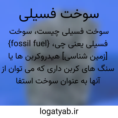 {fossil fuel} [زمین شناسی] هیدروکربن ها یا سنگ های کربن داری که می توان از آنها به عنوان سوخت استفاده کرد
