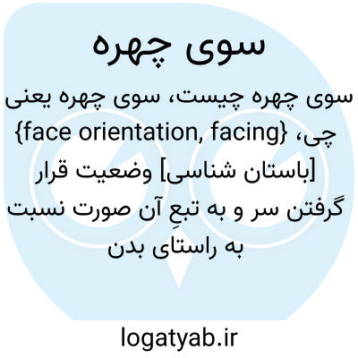 {face orientation, facing} [باستان شناسی] وضعیت قرار گرفتن سر و به تبعِ آن صورت نسبت به راستای بدن