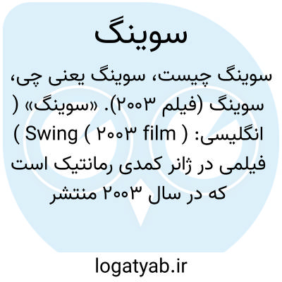 سوینگ (فیلم ۲۰۰۳). «سوینگ» ( انگلیسی: Swing ( 2003 film ) ) فیلمی در ژانر کمدی رمانتیک است که در سال ۲۰۰۳ منتشر شد.