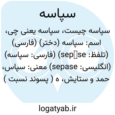 اسم: سپاسه (دختر) (فارسی) (تلفظ: sepāse) (فارسی: سپاسه) (انگلیسی: sepase)