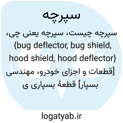 {bug deflector, bug shield, hood shield, hood deflector} [قطعات و اجزای خودرو، مهندسی بسپار] قطعۀ بسپاری یا پلاستیکی شفاف که در جلوی در موتور نصب می شود و مانع از برخورد حشرات و سنگریزه به شیشۀ جلو و در موتور می شود