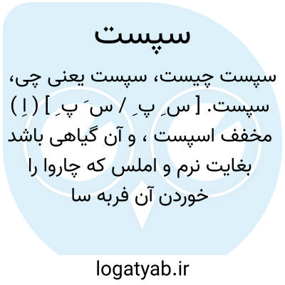سپست. [ س ِ پ ِ / س َ پ ِ ] ( اِ ) مخفف اسپست، و آن گیاهی باشد بغایت نرم و املس که چاروا را خوردن آن فربه سازد و بعربی فصفصه و بترکی یونجه خوانند. ( برهان ) ( آنندراج ). گیاهی است که تنه ندارد و بتازیش رطبةخوانند و آن را چاروا خورند مانند خوید. ( شرفنامه ).هر گیاه فربه کننده ستور خصوصاً یونجه. ( ناظم الاطباء ): غَلیل؛ سپست کوفته بجهت ستور. ( منتهی الارب ). جُفافة؛ ریزه های کاه و سپست. ( منتهی الارب ):