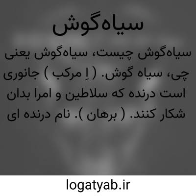 سیاه گوش. ( اِ مرکب ) جانوری است درنده که سلاطین و امرا بدان شکار کنند. ( برهان ). نام درنده ای که از سگ خردتر و از گربه کلان تر است. گلابی ( ؟ ) مایل بسیاهی هر دو گوش او سیاه و نوکدار و سریعالحرکت و بغایت جلدرو باشد. ( غیاث ). جانوری است که گوشهای آن سیاه است و به شاطرشیر مشهور است که زیادتی صید شیر قسمت اوست و آنرا به ترکی قره قلاغ گویند و جانور مسطور پیشاپیش شیر رود و بانگ دهد تا جانوران دیگر از آمدن شیر آگاه شوند و احتیاط نمایند. ( آنندراج ). پروانه. پروانق. عناق الارض. تفه. قره قولاغ. ( یادداشت بخط مؤلف ): سیاه گوش راگفتند ترا ملازمت شیربچه سبب اختیار افتاد، گفت: تا فضله صیدش میخورم. ( گلستان ). رجوع به سیه گوش شود.