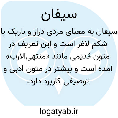 سیفان. [ س َ ] ( ع ص ) مرد دراز باریک میان لاغرشکم. ( منتهی الارب ).