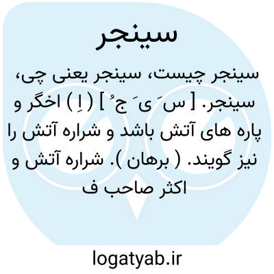 ( اسم ) پاره آتش اخگر: سینجر چو باران زرین چکان نگون ابر بارنده از آسمان. ( فردوسی ) توضیح در فهرست ولف این کلمه ضبط شده و به فرهنگ شاهنامه عبدالقادر در نمره ۱۴۱٠ ارجاع گردیده. این بیت در نسخ معتبر شاهنامه نیامده.