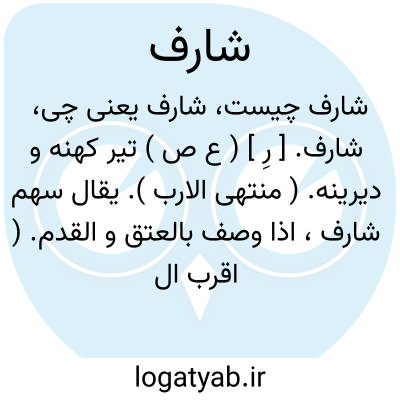 ( صفت ) ۱ - کسی که به زودی مشهور گردد. ۲ - قدیم کهن: سهم شارف خمر شارف جمع: شرف شرف شروف و شرف.