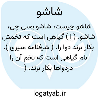 شاشو. ( اِ ) گیاهی است که تخمش بکار برند دوا را. ( شرفنامه منیری ). نام گیاهی است که تخم آن را دردواها بکار برند. ( فرهنگ جهانگیری ) ( برهان ). گیاهی است که تخمش دواست. ( فرهنگ رشیدی ).