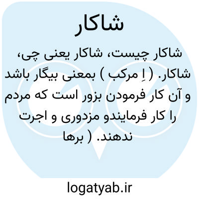 شاکار. ( اِ مرکب ) بمعنی بیگار باشد و آن کار فرمودن بزور است که مردم را کار فرمایندو مزدوری و اجرت ندهند. ( برهان قاطع ) ( ناظم الاطباء ). بیگار باشد که مجرگ خوانند. ( لغت فرس اسدی ) ( فرهنگ نظام ) ( صحاح الفرس ) ( فرهنگ شاهنامه ). مزد بموازنه کار نادادن و آن را شیکار نیز گویند. ( شرفنامه منیری ). مخفف شاه کار بمعنی کاری که بحکم شاه باشد و مزد ندهند و شایگان نیز گویند چه در اصل شاه گان بوده و آن را بیگار یعنی کاری بی مزد گویند. ( انجمن آرا ). کاری باشد نه بر مراد مردم و بی مزد که یا از شرم کنند یا بقهر ایشان را بر آن دارند. ( صحاح الفرس ). کار بی مزد. ( فرهنگ جهانگیری ) ( دهار ) ( ولف ). کار بی مزد و بیگار که بی اجرت بقهر کار فرمایند و مزد ندهند و شاهکارنیز همین معنی را دارد که کسی بی اجرت کسی را در کاردارد. ( تحفة الاحباب حافظ اوبهی ). کار بی مزد باشد که مردم را بزور بر آن دارند. ( فرهنگ سروری ). مجرگ. ( برهان ). رایگان. ( برهان ). بیگار. ( برهان ). سخره. ( برهان ). شاهکار. ( برهان ). شایگان. ( برهان ):