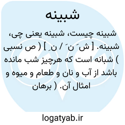 شبینه. [ ش َ ن َ / ن ِ ] ( ص نسبی ) شبانه است که هرچیز شب مانده باشد از آب و نان و طعام و میوه و امثال آن. ( برهان ). رجوع به شبانه و شب مانده شود. || ( اِ مرکب ) شب پره که مرغ عیسی باشد. ( برهان ). || صمغ درخت صنوبر. ( برهان ).