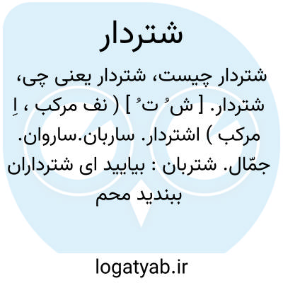 شتردار. [ ش ُ ت ُ ] ( نف مرکب، اِ مرکب ) اشتردار. ساربان.ساروان. جمّال. شتربان: بیایید ای شترداران ببندید محمل زینب. ( یادداشت مؤلف ). || کاروانی که با شتر حمل متاع و کالا میکند. ( ناظم الاطباء ). || مالک و نگهبان شتر. رجوع به اشتردار شود.