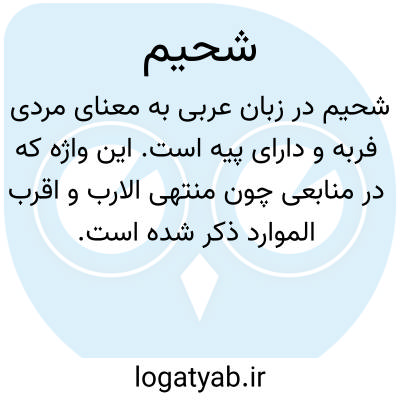 شحیم در زبان عربی به معنای مردی فربه و دارای پیه است. این واژه که در منابعی چون منتهی الارب و اقرب الموارد ذکر شده، توصیفی از اندامی با گوشت و چربی زیاد را ارائه می‌دهد. در واقع، شحیم به فردی اشاره دارد که بدنی چاق و پر داشته و از این جهت متمایز می‌شود. جالب است که این واژه در زبان سریانی معنای کاملاً متفاوتی پیدا می‌کند و به نام کتابی در خصوص آداب و قواعد صلوات، که به دو بخش کبیر و صغیر تقسیم می‌شود، اطلاق می‌گردد. این دوگانگی معنایی نشان‌دهنده غنای واژگان و چگونگی تطور معانی در زبان‌های مختلف است. شحیم واژه‌ای است که هم در توصیف ویژگی‌های جسمانی و هم در اشاره به متون مذهبی و عبادی در زبان‌های گوناگون کاربرد دارد و مطالعه این تفاوت‌ها، درک عمیق‌تری از ریشه‌ها و گسترش زبان‌ها به ما می‌دهد.
