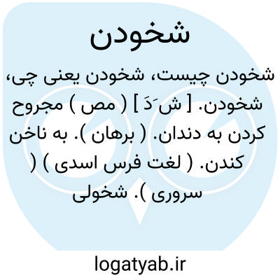 شخودن. [ ش َدَ ] ( مص ) مجروح کردن به دندان. ( برهان ). به ناخن کندن. ( لغت فرس اسدی ) ( سروری ). شخولیدن. ( سروری ). ریش کردن به ناخن و در سراج به معنی خراشیدن. ( غیاث اللغات ). ریش نمودن به ناخن و خراشیدن پوست روی. ( برهان ). شخائیدن. شخالیدن. ریش کردن و خلیدن. کندن چنانکه با ناخن. خراشیدن چنانک با ناخن و دندان یا آلتی تیز. جا انداختن و اثر گذاردن چنانک جریان اشک به روی صورت و غیره: