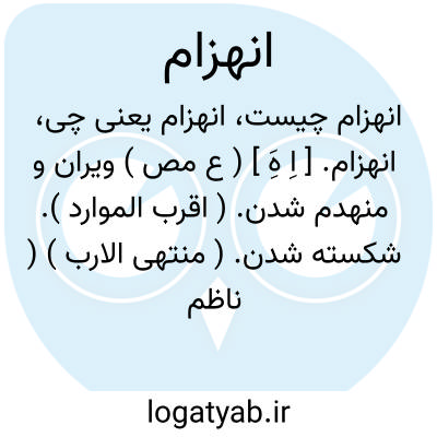 ۱ - ( مصدر ) شکسته شدن مغلوب گشتن شکست خوردن (سپاه ) هزیمت یافتن شکستن. ۲ - شکست هزیمت. جمع: انهزامات.