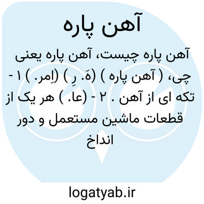 ( آهن پاره ) (هَ. رِ ) (اِمر. ) ۱ - تکه ای از آهن. ۲ - (عا. ) هر یک از قطعات ماشین مستعمل و دور انداختنی، اتومبیل کهنه.
