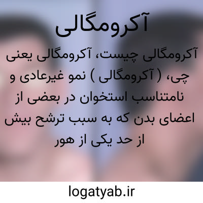 ( آکرومگالی ) نمو غیرعادی و نامتناسب استخوان در بعضی از اعضای بدن که به سبب ترشح بیش از حد یکی از هورمون های غدۀ هیپوفیز صورت می گیرد.
