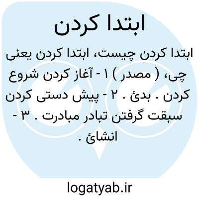 ( مصدر ) ۱ - آغاز کردن شروع کردن. بدئ. ۲ - پیش دستی کردن سبقت گرفتن تبادر مبادرت. ۳ - انشائ.
