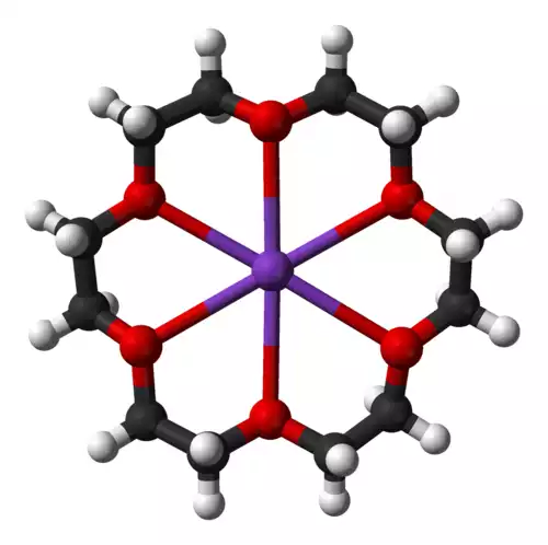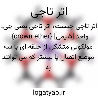 {crown ether} [شیمی] واحد مولکولی متشکل از حلقه ای با سه موضع اتصال یا بیشتر که می توانند به یک عنصر مهمان در مرکز یا نزدیک به مرکز متصل شوند