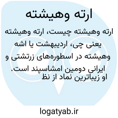 💡 این امشاشپند در جهان مینوی نمایانگر راستی و پاکی و حقوری اهورامزدا است و در جهان خاکی نگهبان آتش است از این رو برخی از فرهنگ‌های فارسی به معنی آتش گرفته شده‌است. ارته وهیشته (اشه وهیشته) به معنی بهترین ارته است که از میان دیگر امشاسپندان زیباترین امشاسپند و نمادی از نظام جهانی، قانون ایزدی و نظم اخلاقی در این جهان است.