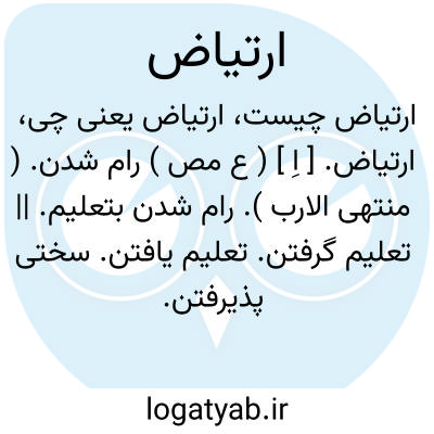 ارتیاض. [ اِ ] ( ع مص ) رام شدن. ( منتهی الارب ). رام شدن بتعلیم. || تعلیم گرفتن. تعلیم یافتن. سختی پذیرفتن. ریاضت پذیرفتن. ( زوزنی ). ریاضت کشیدن. ستم کشیدن برای تعلیم گرفتن: وزیر ابوالعباس در صناعت دبیری بضاعتی نداشت و بممارست قلم و مدارات ادب ارتیاض نیافته بود. ( ترجمه تاریخ یمینی ص 366 ). اما کبر سن و تجارب ایام و قدرت بر دقایق سرداری و معرفت مقادیر حشم و ارتیاض بآداب جهانبانی در استثبات ملک واستدامت دولت اصلی مبین و حبلی متین است. ( ترجمه تاریخ یمینی ص 189 ). || خوش کردن کسی را.