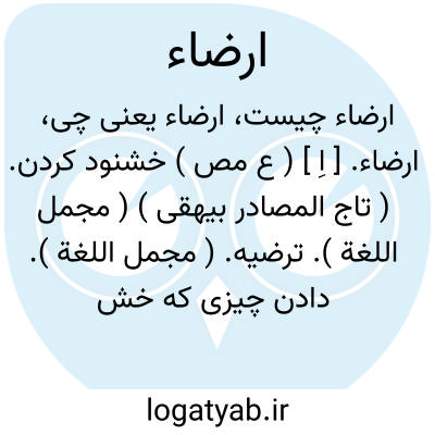 ارضاء. [ اِ ] ( ع مص ) خشنود کردن. ( تاج المصادر بیهقی ) ( مجمل اللغة ). ترضیه. ( مجمل اللغة ). دادن چیزی که خشنود کند. ( منتهی الأرب ). || اقناع.