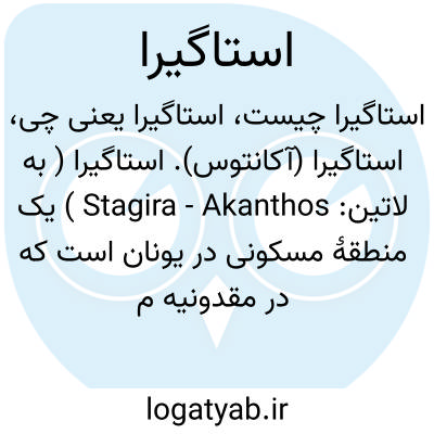 استاگیرا (یونان). استاگیرا ( به لاتین: Stagira ) یک منطقهٔ مسکونی در یونان است که در شهرستان اریستوتلیس واقع شده است.