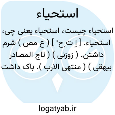 استحیاء. [ اِ ت ِح ْ ] ( ع مص ) شرم داشتن. ( زوزنی ) ( تاج المصادر بیهقی ) ( منتهی الارب ). باک داشتن. حیا داشتن. شرمندگی. خجلت. خجل. شرم. حیا کردن. استحاء. || زندگی خواستن. || زنده گذاشتن. ( زوزنی ). استبقاء. زنده داشتن. واگذاشتن. زنده و باقی گذاشتن. ( منتهی الارب ): فلما جأهم بالحق من عندنا قالوا اقتلوا ابناءالذین آمنوا معه و استحیوا نسأهم و ما کیدالکافرین الا فی ضلال. ( قرآن 25/40 ).