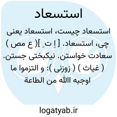 استسعاد. [ اِ ت ِ ]( ع مص ) سعادت خواستن. نیکبختی جستن. ( غیاث ) ( زوزنی ): و التزموا ما اوجبه اﷲ من الطاعة علیهم و اعطوا للصفق ایمانهم بالبیعة اصفاق رضی و انقیاد و تبرک و استسعاد. ( از نامه قائم بامراﷲ بسلطان مسعود، از تاریخ بیهقی چ ادیب ص 301 )؛ ترجمه: و التزام نمودند ما را آنچه خداوند بر ایشان واجب ساخته از اطاعت امام به واسطه بیعت دستهای راست دادند دست دادن از روی رضاو رغبت و فرمان برداری و برکت جستن و سعادت طلبیدن. ( تاریخ بیهقی ص 312 ). گردن کشان جهان سر بر خطّ فرمان او نهادند و به انقیاد اوامر و زواجر او استسعاد جستند. ( ترجمه تاریخ یمینی ص 45 ). و هم در آن مرحله ملک شمس الدین کرت پیشتر از سایر ملوک ایران بشرف استقبال استسعاد یافت. ( رشیدی ). || نیکبخت شمردن. ( منتهی الارب ) ( زوزنی ). سعید شمردن. || مبارک و میمون دانستن کسی را. ( منتهی الارب ). || یاری خواستن. ( زوزنی ) ( غیاث ) ( منتهی الارب ).