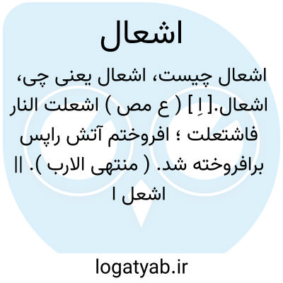 اشعال.[ اِ ] ( ع مص ) اشعلت النار فاشتعلت؛ افروختم آتش راپس برافروخته شد. ( منتهی الارب ). || اشعل ابله بالقطران؛ درگرفت شتران خود را بقطران. ( منتهی الارب )؛ کثَّره علیها. ( اقرب الموارد ). || پراکنده کردن اسبان را در غارت و جز آن. ( منتهی الارب ). اشعل الخیل فی الغارة؛ بثها. ( اقرب الموارد ). || اشعل الابل؛ فرّقها. ( اقرب الموارد ). || نیک سیراب کردن. ( منتهی الارب ). اشعل السقی؛ اکثر الماء. ( اقرب الموارد ). || آب چکیدن ازمشک و جز آن از هر جای. ( منتهی الارب ). اشعلت القربةاو المزادة؛ سال ماؤها متفرقاً. ( اقرب الموارد ). || جای جای خون برآمدن از زخم نیزه. ( منتهی الارب ). اشعلت الطعنة؛ خرج دمها متفرقاً. ( اقرب الموارد ). || بسیار روان شدن اشک از چشم. ( منتهی الارب ). اشعلت العین؛ کثر دمعها. ( اقرب الموارد ).