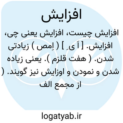 افزایش. [ اَ ی ِ ] ( اِمص ) زیادتی شدن. ( هفت قلزم ). یعنی زیاده شدن و نمودن و اوزایش نیز گویند. ( از مجمع الفرس ). افزودن. ( منتهی الارب ). عمل افزودن شدن و عمل افزون کردن. ( فرهنگ فارسی معین ). مصدر دوم افزودن. اسم از افزودن. حاصل مصدر افزودن و فزودن. عمل افزودن. مصدر دیگر افزودن. فزایش. مقابل کاهش. ازدیاد. یمن. برکت. یمین. برخ. ( از یادداشت دهخدا ):