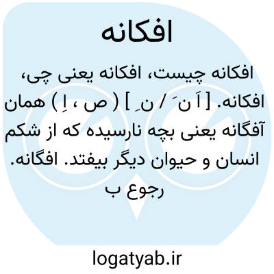 افکانه. [ اَ ن َ / ن ِ ] ( ص، اِ ) همان آفگانه یعنی بچه نارسیده که از شکم انسان و حیوان دیگر بیفتد. افگانه. رجوع به آفگانه و افگانه شود.