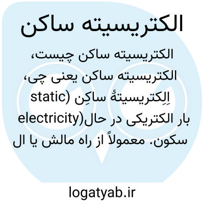 بار الکتریکی در حال سکون. معمولاً از راه مالش یا القای الکتروستاتیکی در جسم پدید می آید. مالش اجسام به هم ممکن است منجر به تولید الکتریسیتۀ ساکن شود. نمونه های آن را در جرقه های پدیدآمده به هنگام شانه کردن مو یا درآوردن لباس های نایلونی از تن می توان مشاهده کرد. در این موارد، نیروی اصطکاک سبب کنده شدن الکترون ها از مدارهای اتمی شان می شود. در این صورت، الکترون از جسمی به جسم دیگر منتقل می شود. جسمی که الکترون می گیرد، به صورت منفی باردار می شود و ماده ای که الکترون از دست می دهد، بار مثبت پیدا می کند. الکتریسیتۀ ساکن را در بعضی فرآیندها به کار می برند. از آن جمله در پاشیدن رنگ روی قطعات که قطعات را با بار مخالف قطرات رنگ باردار می کنند. نمونۀ دیگری از کاربرد الکتریسیتۀ ساکن، عملیات زیراکس و تصویربرداری است. نیز ← الکتروستاتیک