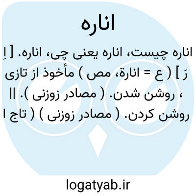اناره. [ اِ رَ ] ( ع = انارة، مص ) مأخوذ از تازی، روشن شدن. ( مصادر زوزنی ). || روشن کردن. ( مصادر زوزنی ) ( تاج المصادر بیهقی ). اضائه. تبیین. ایضاح. ( یادداشت مؤلف ). || جامه را علم زدن. ( مصادر زوزنی ). جامه را علم کردن. || شکوفه بیاوردن. ( تاج المصادر بیهقی ). و رجوع به انارة و انارت شود.