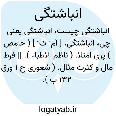 انباشتگی. [ اَم ْ ت َ ] ( حامص ) پری امتلا. ( ناظم الاطباء ). || فرط مال و کثرت مثال. ( شعوری ج 1 ورق 132 ب ).