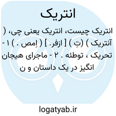 ( آنتریک ) (تِ ) [ ازفر. ] ( اِمص. ) ۱ - تحریک، توطئه. ۲ - ماجرای هیجان انگیز در یک داستان و نمایش یا فیلم که باعث جلب توجه یا علاقه می شود.