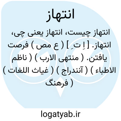 انتهاز. [ اِ ت ِ ] ( ع مص ) فرصت یافتن. ( منتهی الارب ) ( ناظم الاطباء ) ( آنندراج ) ( غیاث اللغات ) ( فرهنگ فارسی معین ). قابو ( فرصت ) یافتن. ( غیاث اللغات ) ( آنندراج ). فرصت بدست آوردن. ( فرهنگ فارسی معین ). || غنیمت شمردن. ( منتهی الارب ) ( ناظم الاطباء ) ( فرهنگ فارسی معین ). اغتنام فرصت و برخاستن بسوی آن در حال پیشی گرفتن. ( از اقرب الموارد ). فرصت غنیمت شمردن و فرصت چشم داشتن. ( غیاث اللغات ) ( آنندراج ). منتظر فرصت بودن. ( فرهنگ فارسی معین ). به غنیمت گرفتن. ( مصادر زوزنی ) ( تاج المصادر بیهقی ). || زشت خندیدن و افراط کردن در آن. ( منتهی الارب ) ( ناظم الاطباء ) ( آنندراج ) ( از اقرب الموارد )، یقال:انتهز فی الضحک اذا اقرط و قبح. ( منتهی الارب ) ( ناظم الاطباء ). || پذیرفتن چیزی را و شتاب کردن در بدست آوردن آن. ( از اقرب الموارد ). || نزدیک آوردن کودک بلوغ را. ( منتهی الارب ) ( ناظم الاطباء ). || ( اِ ) محل و موقع. ( ناظم الاطباء ).