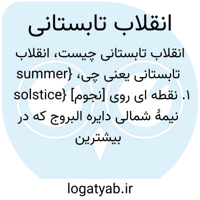 {summer solstice} [نجوم] 1. نقطه ای روی نیمۀ شمالی دایره البروج که در بیشترین فاصلۀ زاویه ای از استوای آسمان است وبا رسیدن مرکز خورشید به آن، تابستان در نیمکرۀ شمالی آغاز می شود 2. زمانی که خورشید به این نقطه در آسمان برسد
