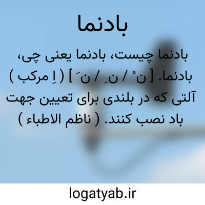 بادنما. [ ن ُ / ن ِ / ن َ ] ( اِ مرکب ) آلتی که در بلندی برای تعیین جهت باد نصب کنند. ( ناظم الاطباء ). نشان یا پرده ای که ازو سمت وزیدن باد مشخص و معلوم شود. ( آنندراج ). صفحه سبک گردانی که در اطراف یک محور عمودی متحرک است و برای تعیین جهت و سمت باد در محل مرتفعی نصب میکنند.