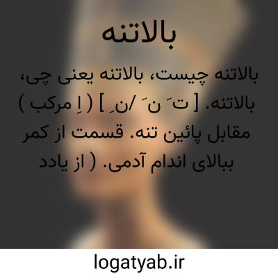 بالاتنه. [ ت َ ن َ /ن ِ ] ( اِ مرکب ) مقابل پائین تنه. قسمت از کمر ببالای اندام آدمی. ( از یادداشت مؤلف ). نیمه بالایین بدن آدمی. || قسمت بالایین جامه که از کمر ببالا را پوشد. ( یادداشت مؤلف ). آن جزء از جامه که بالاتنه را پوشد در جامه های دراز. مقابل پائین تنه و دامن.
