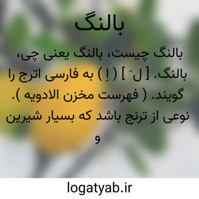 بالنگ. [ ل َ ] ( اِ ) به فارسی اترج را گویند. ( فهرست مخزن الادویه ). نوعی از ترنج باشد که بسیار شیرین و نازک شود و از آن مربا سازند. ( برهان قاطع ) ( آنندراج ). جنسی است از ترنج بزرگ. ( شرفنامه منیری ). قسمی از مرکبات کشیده اندام که از پوست گوشت آلود آن مربای بالنگ کنند. ( یادداشت مؤلف ). نوعی از ترنج بود که بغایت نازک و شیرین شده از آن مربا پزند.نوع ترنج و شیرین تر از آن. ( ناظم الاطباء ). قسمی از مرکبات که شکل درازی دارد و پوست سفید داخلیش کلفت است و از آن مربی میسازند. ( فرهنگ نظام ):