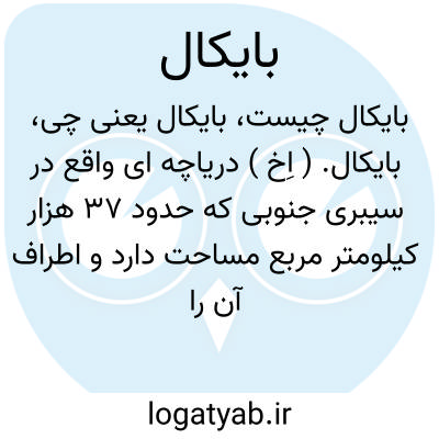 بایکال. ( اِخ ) دریاچه ای واقع در سیبری جنوبی که حدود 37 هزار کیلومتر مربع مساحت دارد و اطراف آن را کوههایی که حدود1400 گز ارتفاع دارند فراگرفته اند. حداکثر عمق آن 960 گز است، دو رودخانه سلنگا و آنگارا بدان وارد می شوند و تنها یک جزیره بنام اولخون در آن هست. این دریاچه هنگام زمستان یخ میزند. از کنار آن راه آهن میگذرد. ( از لاروس ). و رجوع به لغات تاریخیه و جغرافیه ترکی ج 2 ص 56 و قاموس الاعلام زیر عنوان «بایقال » شود.