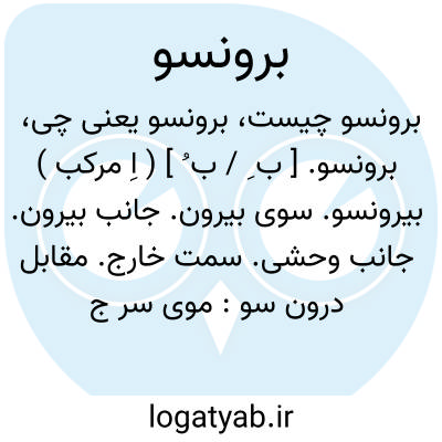 برونسو. [ ب ِ / ب ُ ] ( اِ مرکب ) بیرونسو. سوی بیرون. جانب بیرون. جانب وحشی. سمت خارج. مقابل درون سو:
