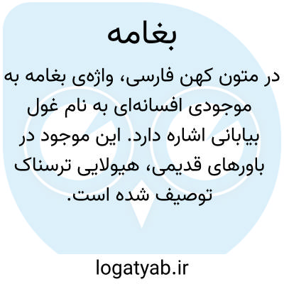در متون کهن فارسی، واژه‌ی بَغامه به موجودی افسانه‌ای به نام غول بیابانی اشاره دارد. این موجود در باورهای قدیمی، هیولایی ترسناک توصیف شده که در بیابان‌های پهناور و بی‌آب‌وعلف زندگی می‌کند. بر پایه‌ی منابع معتبری مانند برهان قاطع، مؤید الفضلاء، آنندراج و فرهنگ نظام، بغامه از جنس دیو، اهریمن یا موجودی شیطانی پنداشته می‌شده است.