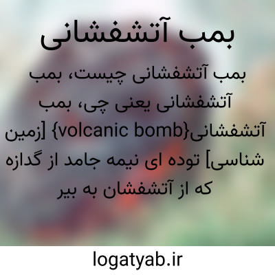 {volcanic bomb} [زمین شناسی] توده ای نیمه جامد از گدازه که از آتشفشان به بیرون پرتاب و در میانۀ مسیر جامد می شود