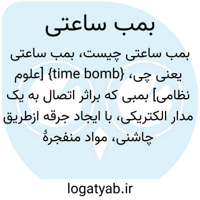 {time bomb} [علوم نظامی] بمبی که براثر اتصال به یک مدار الکتریکی، با ایجاد جرقه ازطریق چاشنی، مواد منفجرۀ داخلی آن در زمان معینی منفجر می شود