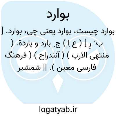 بوارد. [ ب َ رِ ] ( اِ ) ترشی باشد که در برابر شیرینی است. ( برهان ). ترشی و حموضت و تیزی. ( ناظم الاطباء ): باب چهارم از بخش نخستین از جزو دوم از گفتار سیوم از کتاب سیوم اندر شناختن منفعت و مضرت بوارد کامه ها و آچالها [آچارها] و آنچه بدین ماند و دفعمضرت آن. ( ذخیره خوارزمشاهی ). چون از انشاد این قصیده فراغ حاصل آمد مائده نهادند مزین به اصناف مطعوم و بوارد به وی راه گشاده. ( تاریخ بیهق ص 161 ). || طبق و دوری. ( ناظم الاطباء ) ( از اشتینگاس ).