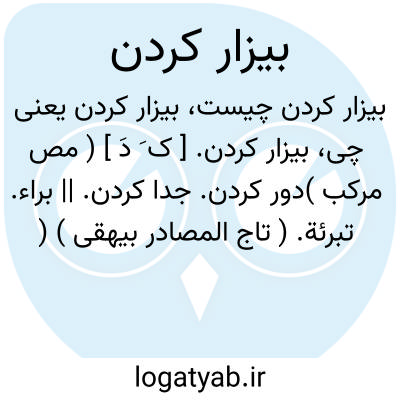 - بیزار کردن کسی را؛ تبرئه کردن او را. بری شمردن او را. ( یادداشت مؤلف ):